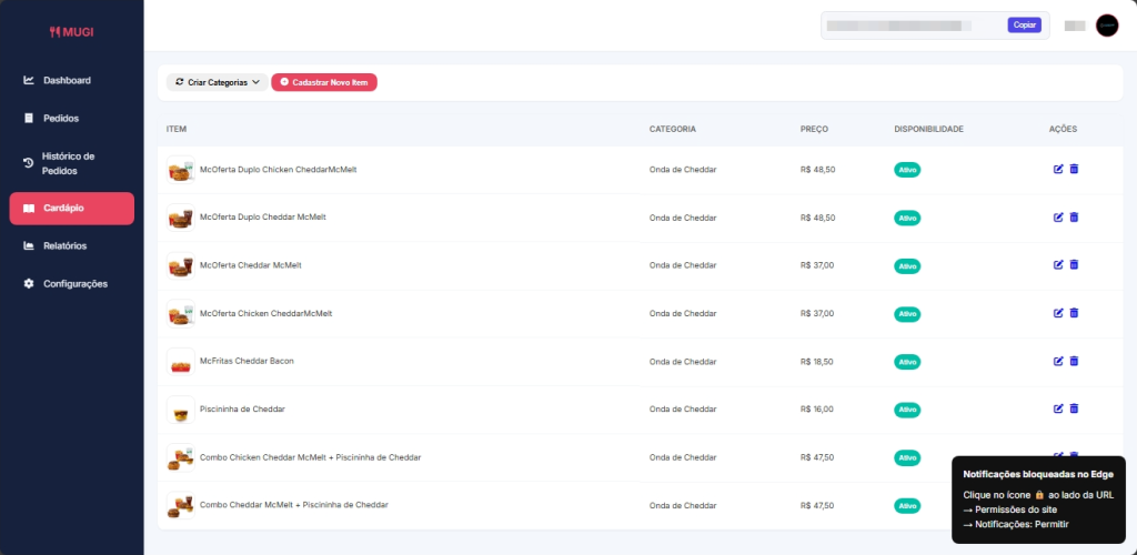 Tenha um painel completo para gerenciar seus pedidos. Visualize clientes, endereços, formas de pagamento, itens do pedido e status em tempo real. Tudo organizado em um só lugar para agilizar o atendimento, reduzir erros e manter total controle da sua operação. Gestão simples, serviço rápido, cliente satisfeito.